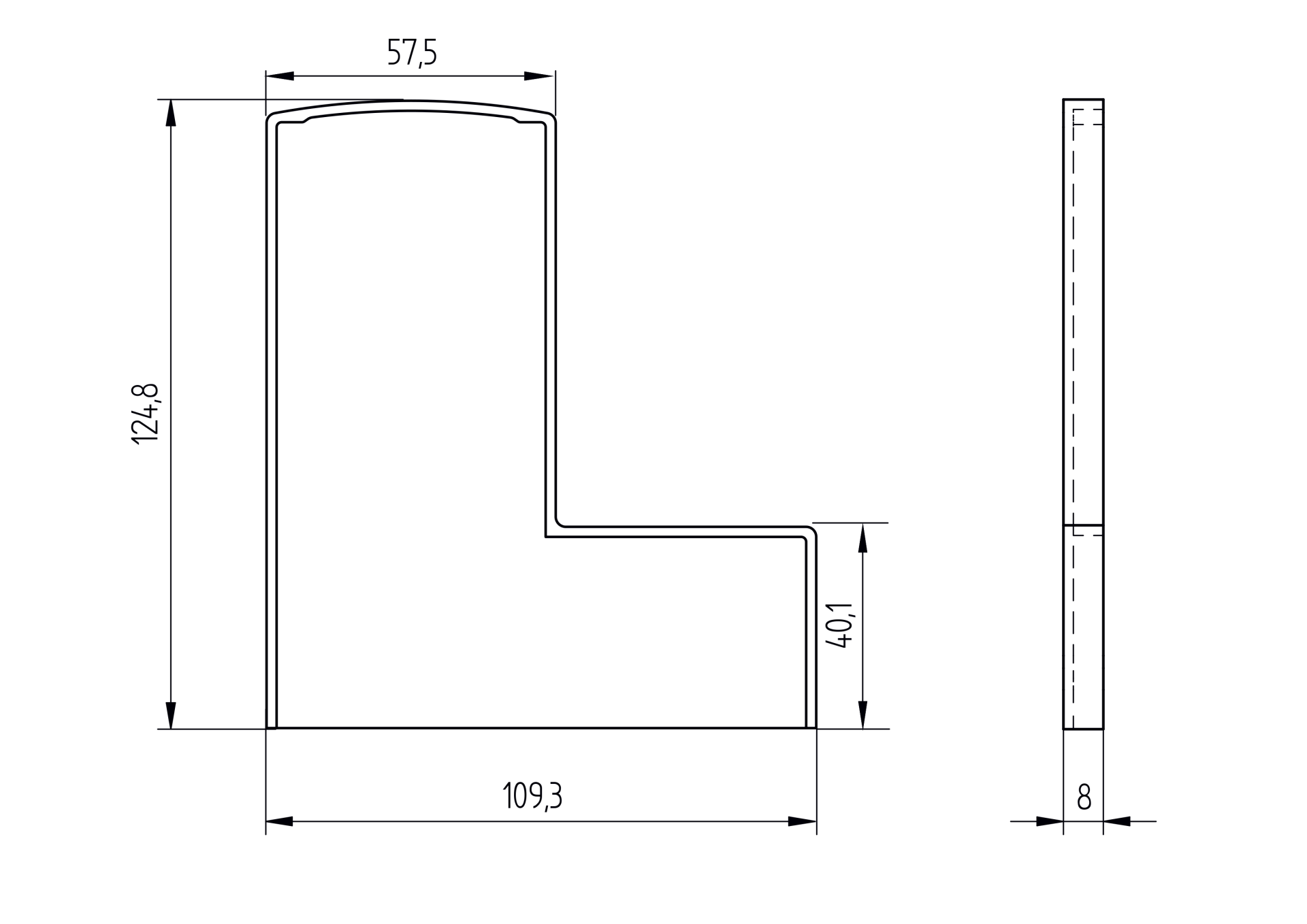 AL anchoring profile for glass, top anchoring, surface ground and anodized, without accessories.