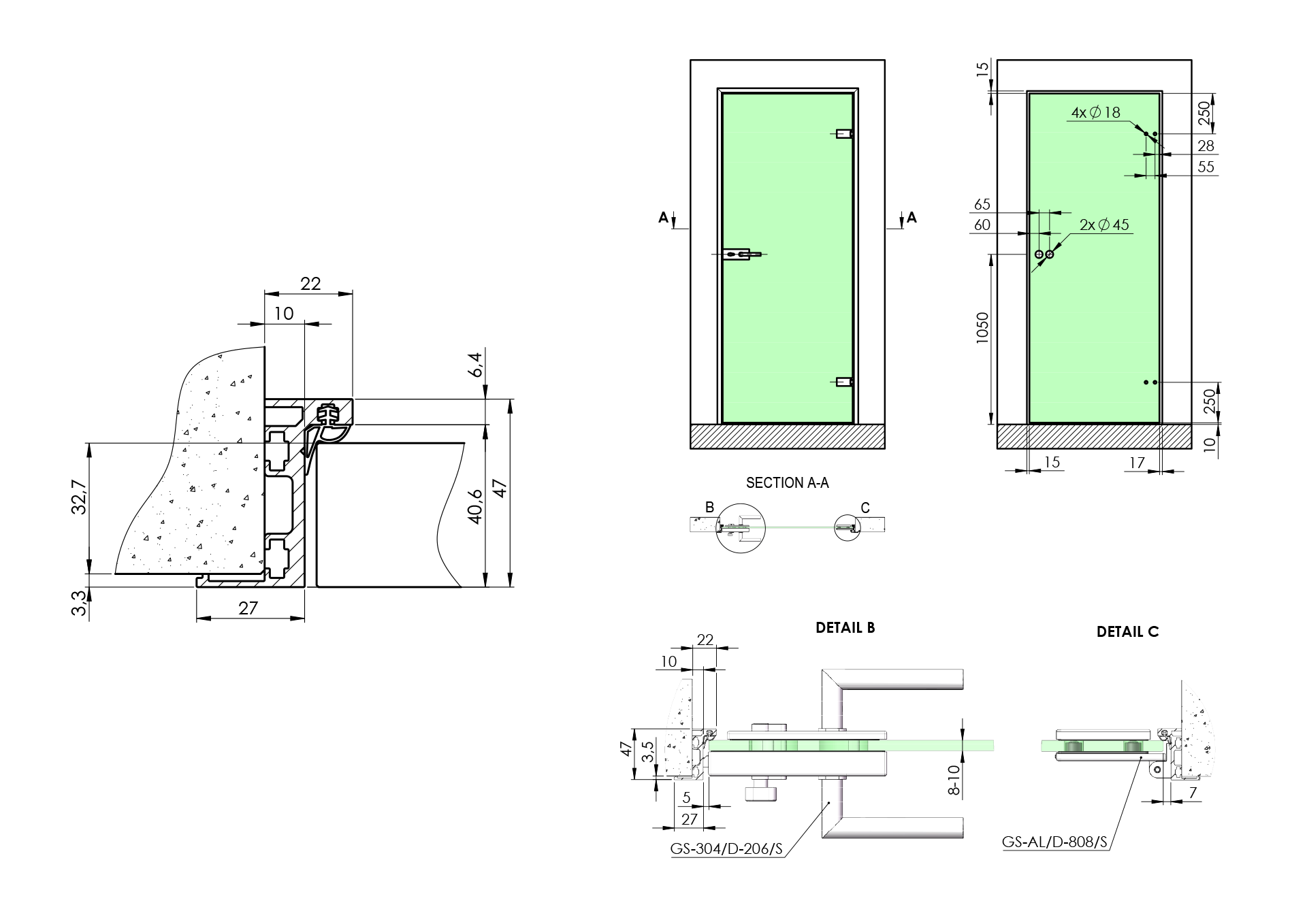 Lowest price in the last 30 days:without VAT€1.871,36Unit price /UnavailableVery low stock (5 units)Door profile for glass door + hinges GS-AL/ZP-N-E