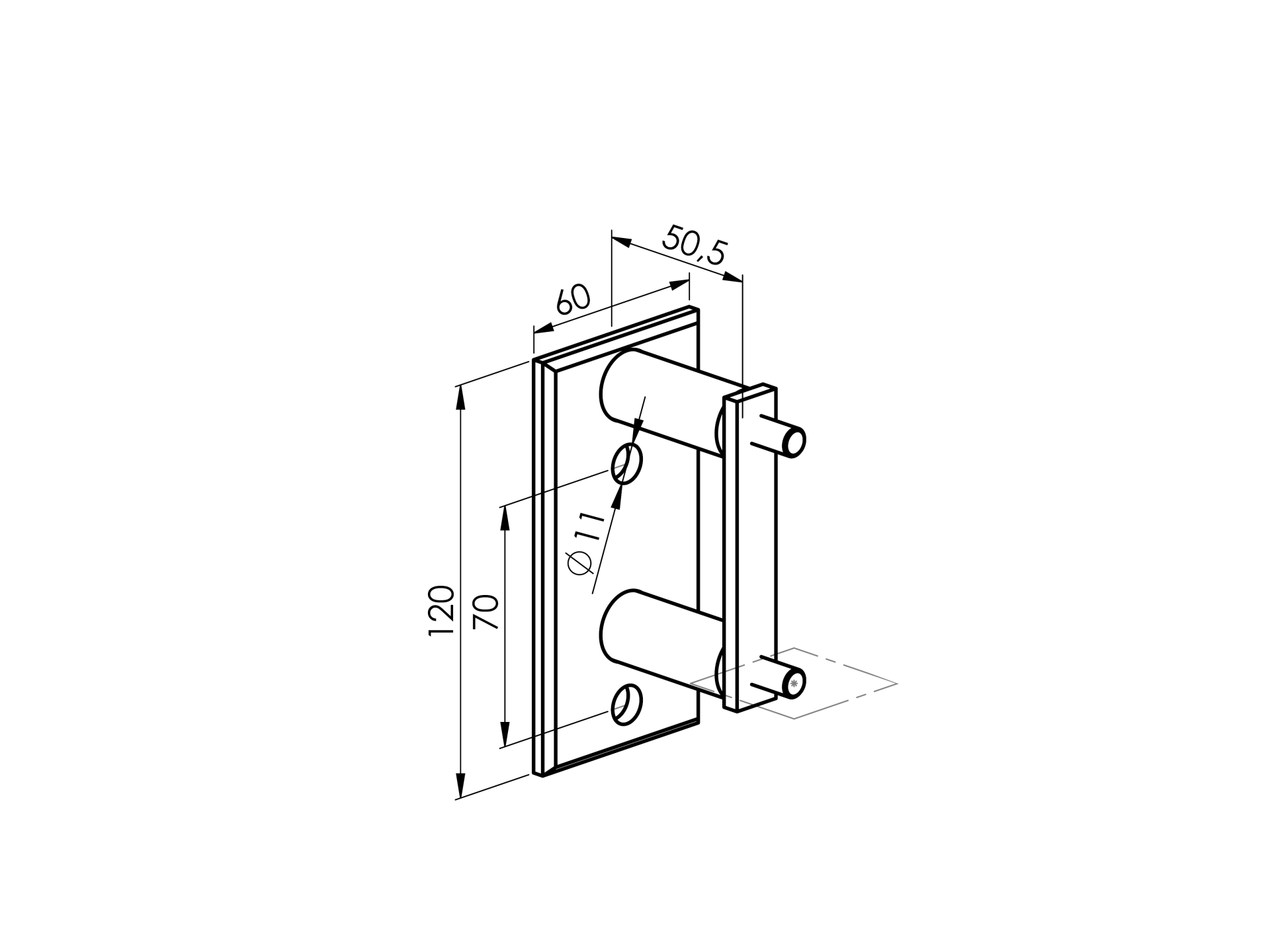 Rectangular side anchoring AISI304, 120x60x51/40x4