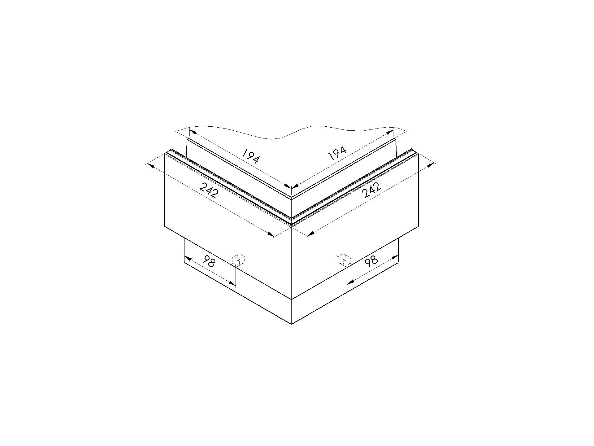 AL. profile, top mount 90° IN corner AL/ELOX/Sati AL/0004-PRO-S-E-90