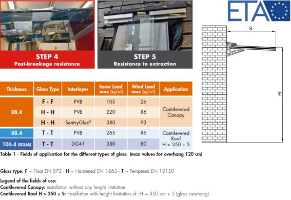 Aluminum ceiling canopy for safety glass VSG/ESG 16,76 - 17,52 mm, 2kN / m2, self-supporting glass without drilling of safety holes, LED, glass panel not included. Aluminum rail for glass canopy supplied without glass. The set contains a profile, blanking plugs, seals and the necessary parts for the final assembly of the glass.