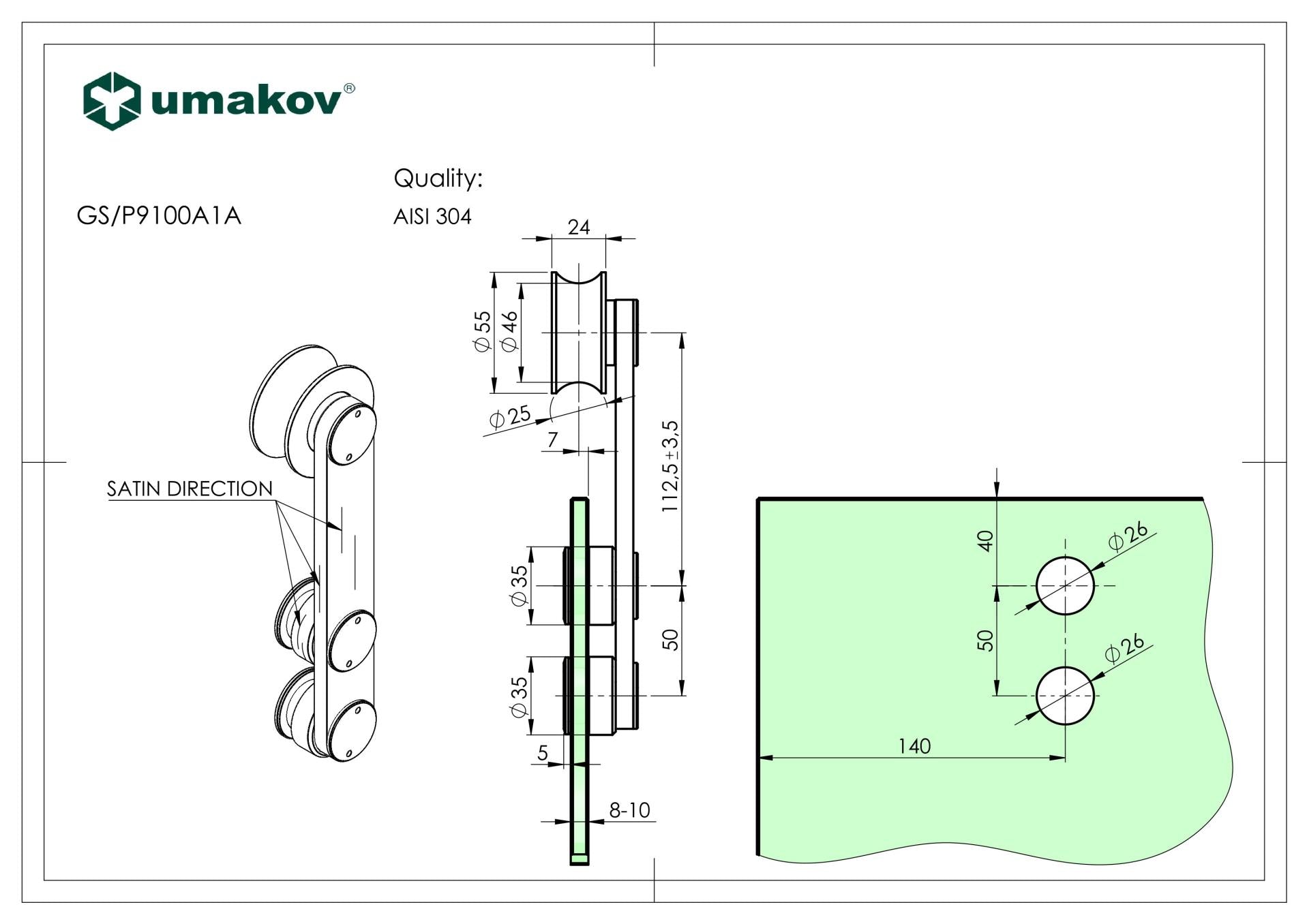 MaterialStainless steel AISI 304Surface finishSatinedGlass t8-10Stock availability