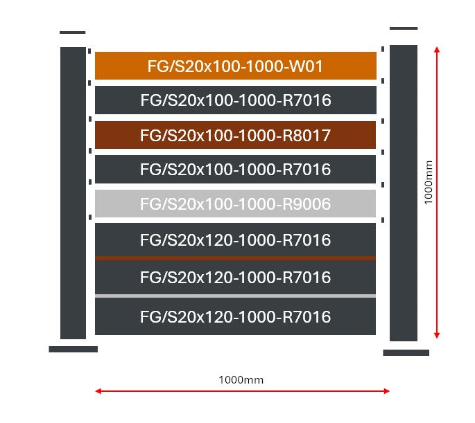 Fence sample 1x1m with anchor plates with flat slats FG/S20