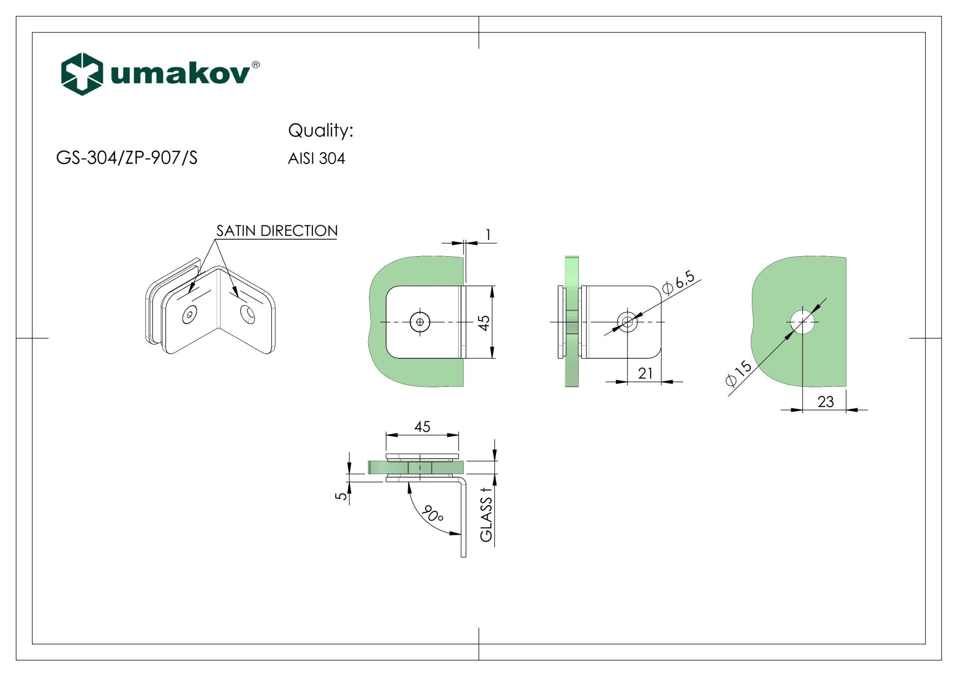 Glass clamp, AISI 304, T 8-10 mm GS-304/ZP-907/S