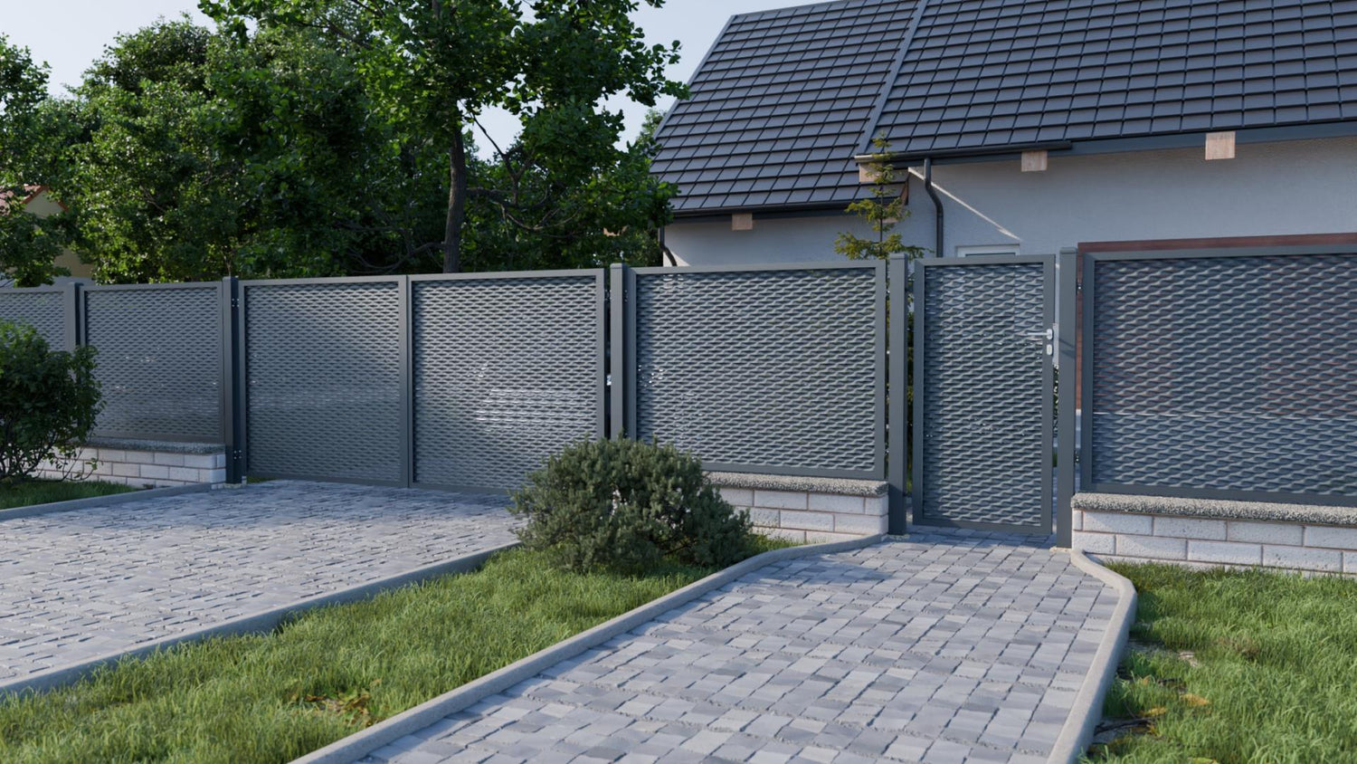 Aluminum gate 2-section 4000x1500mm expanded metal anthracite