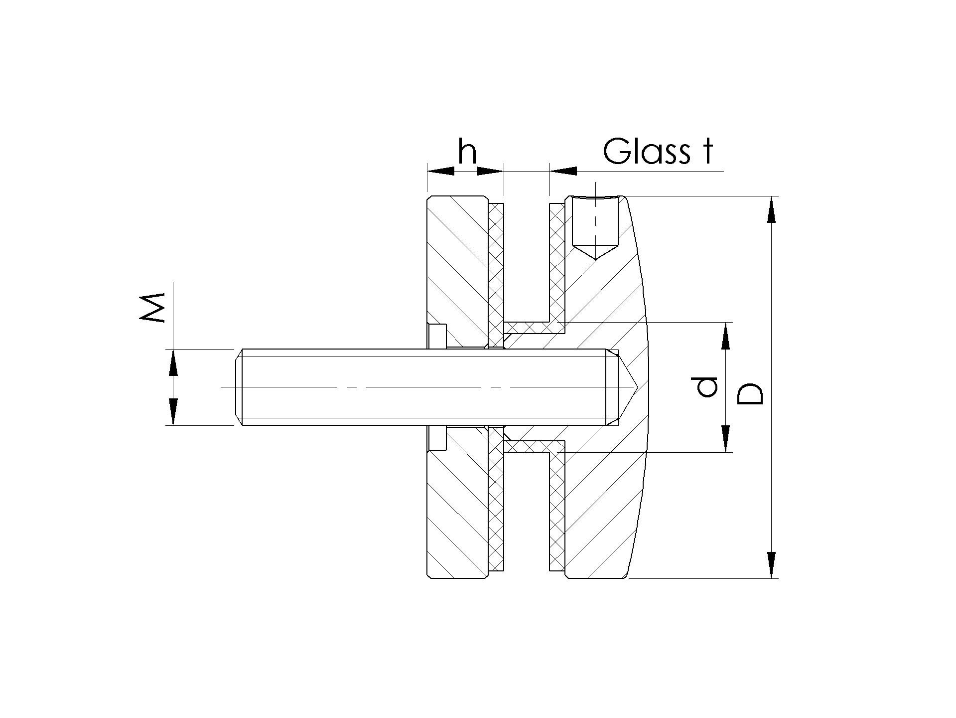 The glass infill point holder is a special construction element used to fix the glass infill to the frame or structure without the use of traditional bar holders. These holders are usually in the shape of a round or square tip that is fixed into the substrate and holds the glass using a small contact point. They provide a minimalist look as they do not require extensive mouldings or frames to surround the glass. This design allows for maximum use of light and openness of space, making them ideal for modern and minimalist architectural applications. They are particularly used in interior and exterior applications such as railings, balustrades, doors, walls and other structures where a modern and elegant look is desired.