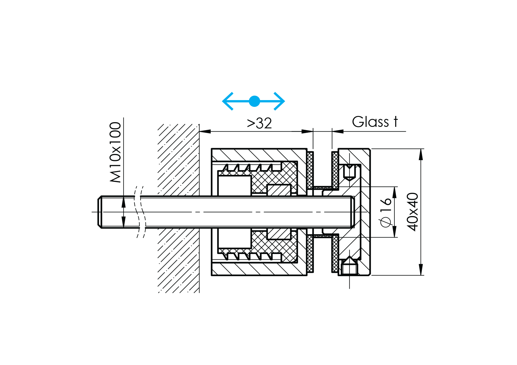 The glass infill point holder is a special construction element used to fix the glass infill to the frame or structure without the use of traditional bar holders. These holders are usually in the shape of a round or square tip that is fixed into the substrate and holds the glass using a small contact point. They provide a minimalist look as they do not require extensive mouldings or frames to surround the glass. This design allows for maximum use of light and openness of space, making them ideal for modern and minimalist architectural applications. They are particularly used in interior and exterior applications such as railings, balustrades, doors, walls and other structures where a modern and elegant look is desired.