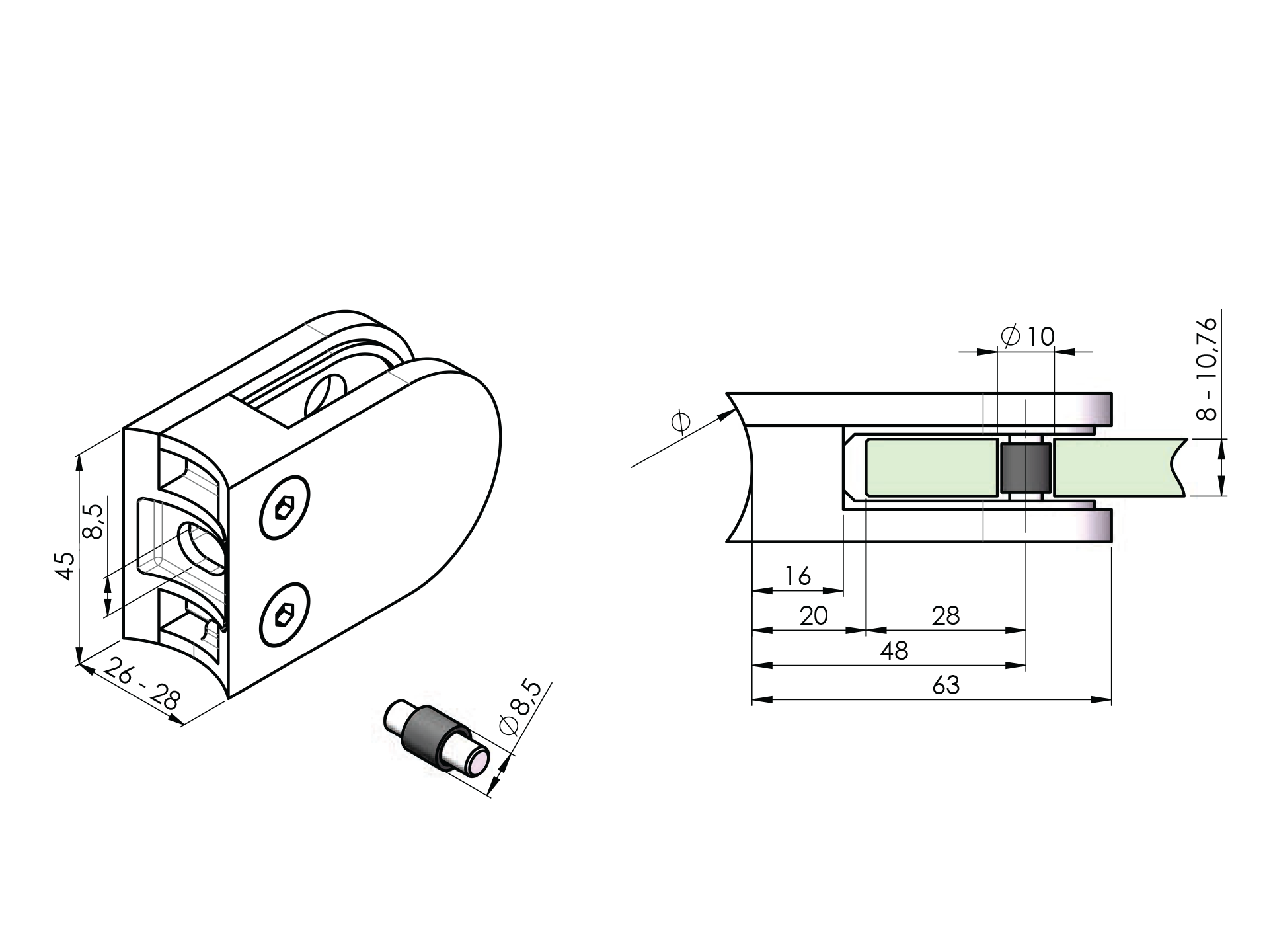 MaterialZAMAK alloySurface finishNaturalGlass t8/8,76/10/10,76/1,5/2/3Required productsStock availability