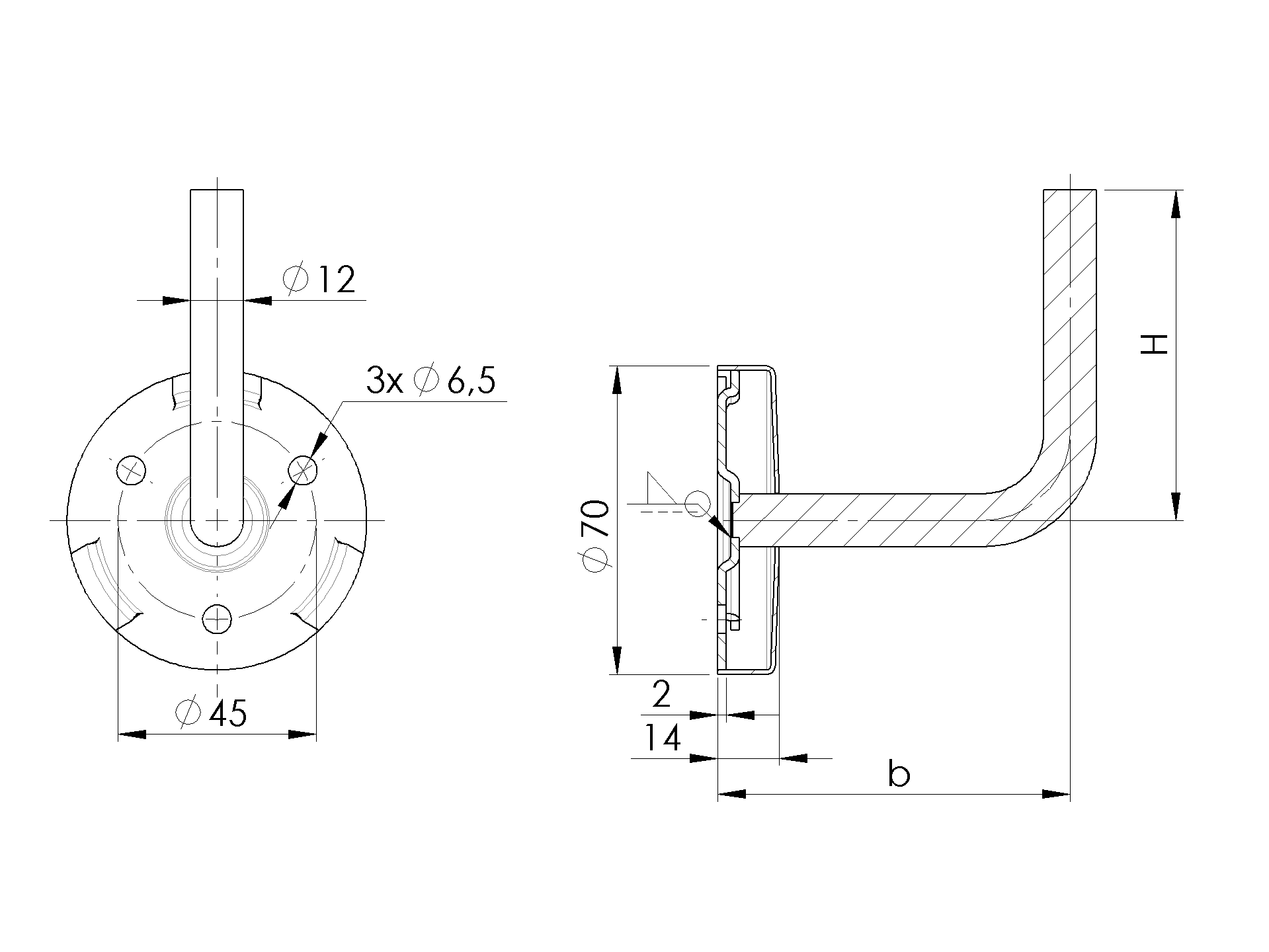 1 pcsMaterialStainless steel AISI 304Surface finishNaturalL14Handrail bracket - ring A6/42-55-35-B