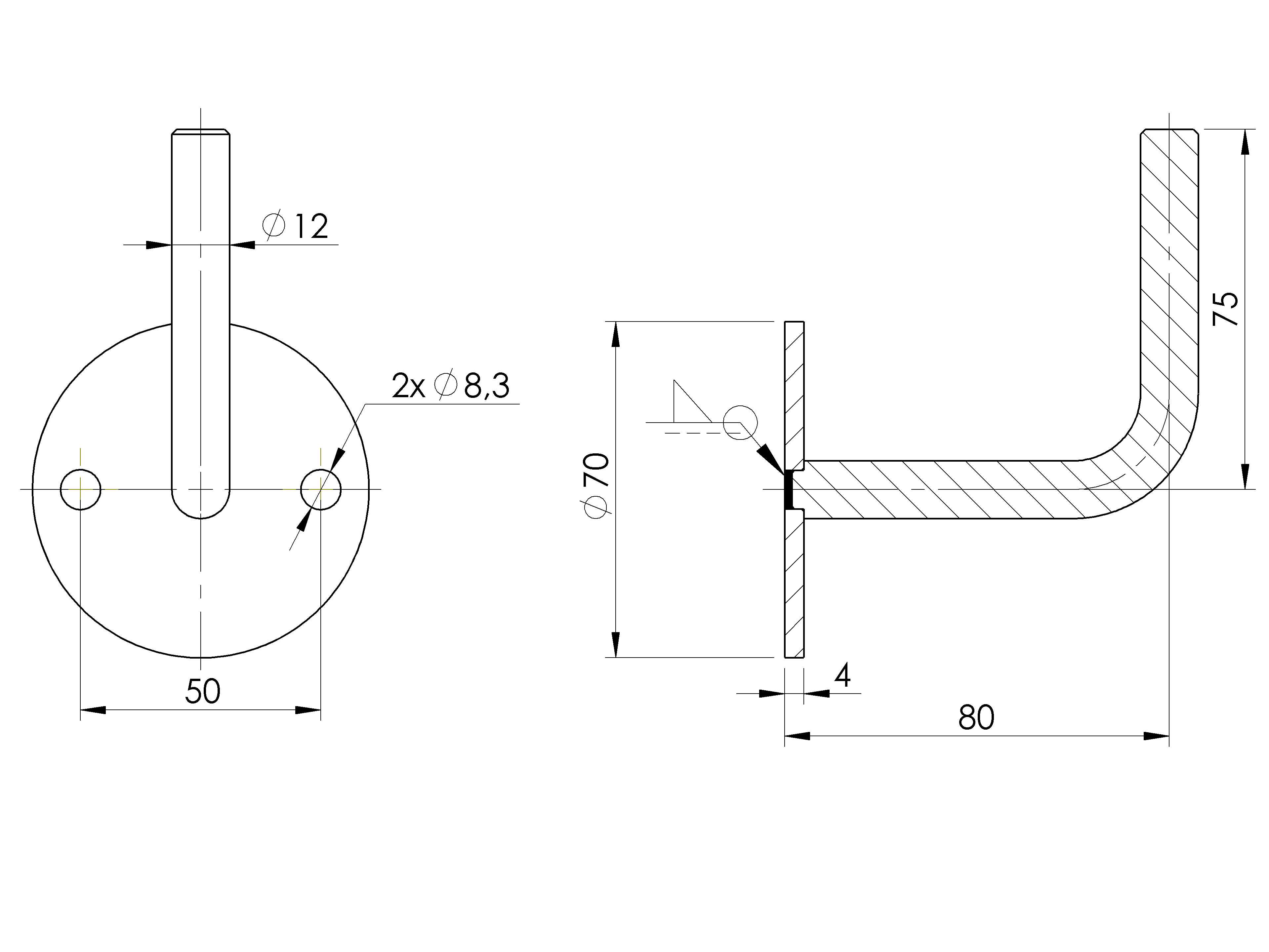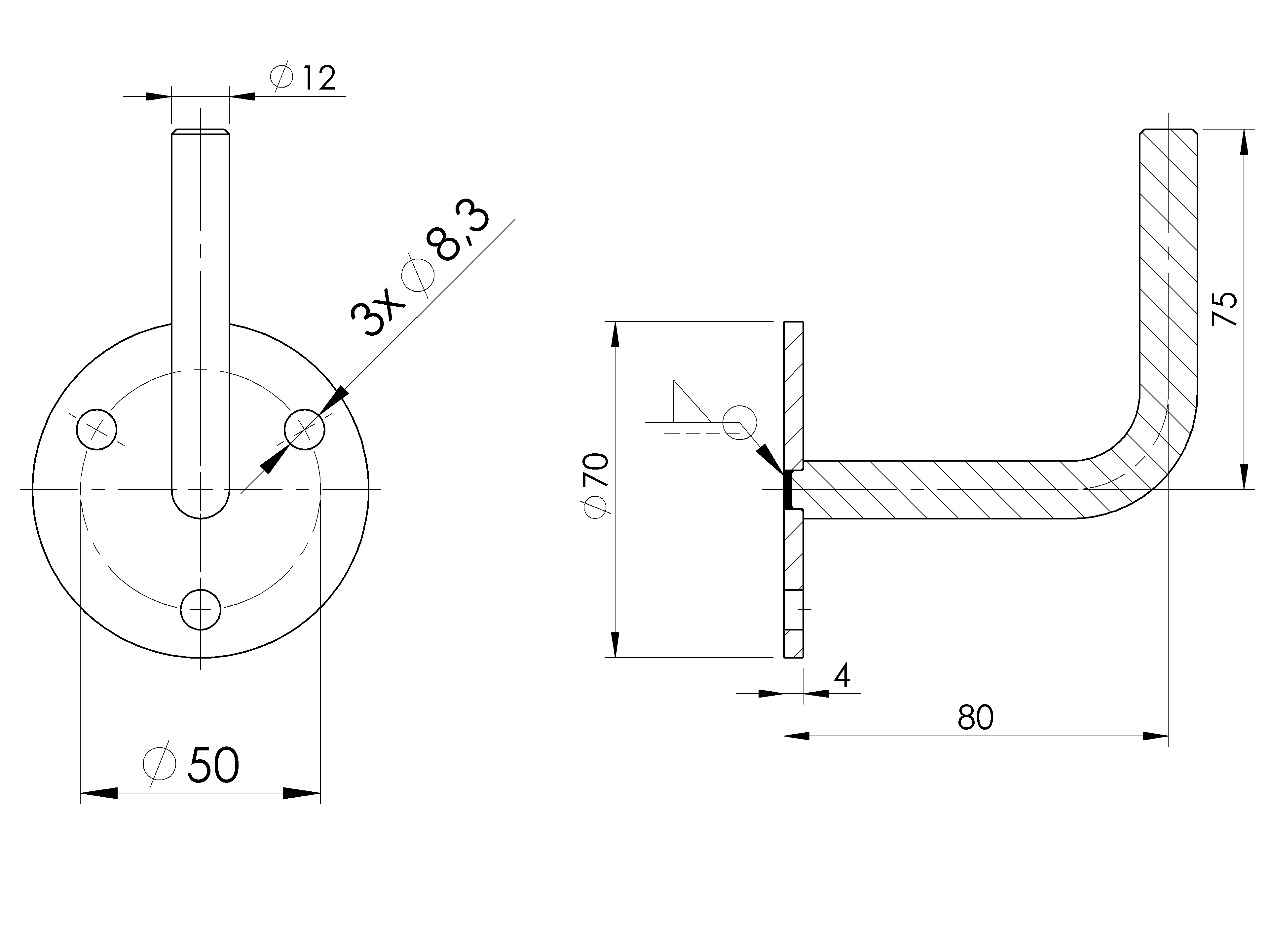 Lowest price in the last 30 days:without VAT€0,15Unit price /UnavailableIn stock (593 units)Handrail bracket - wall, railnig A/0112-042-B-L