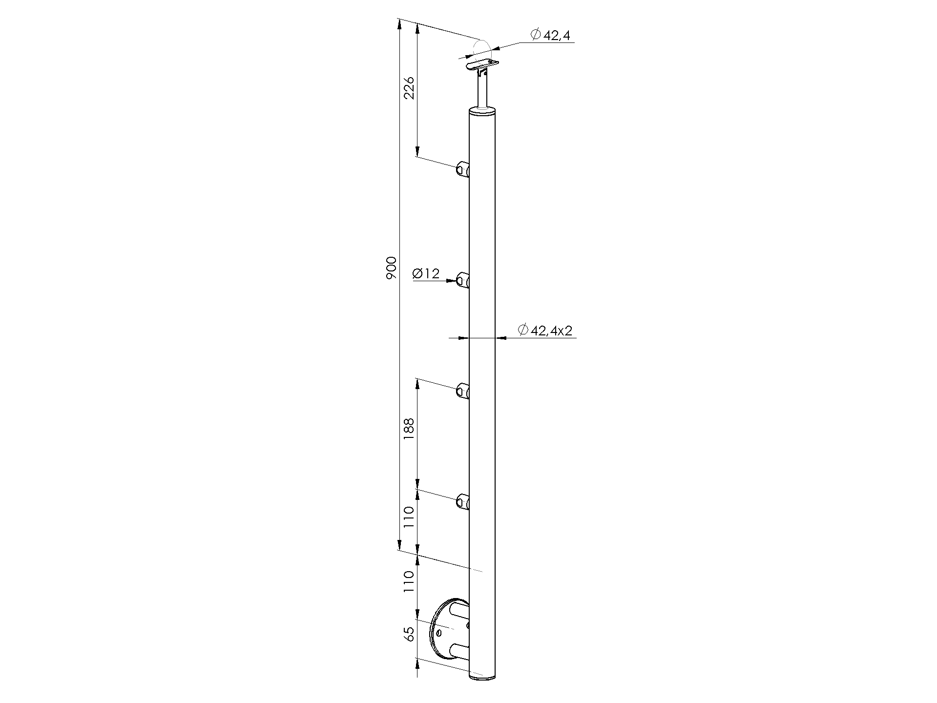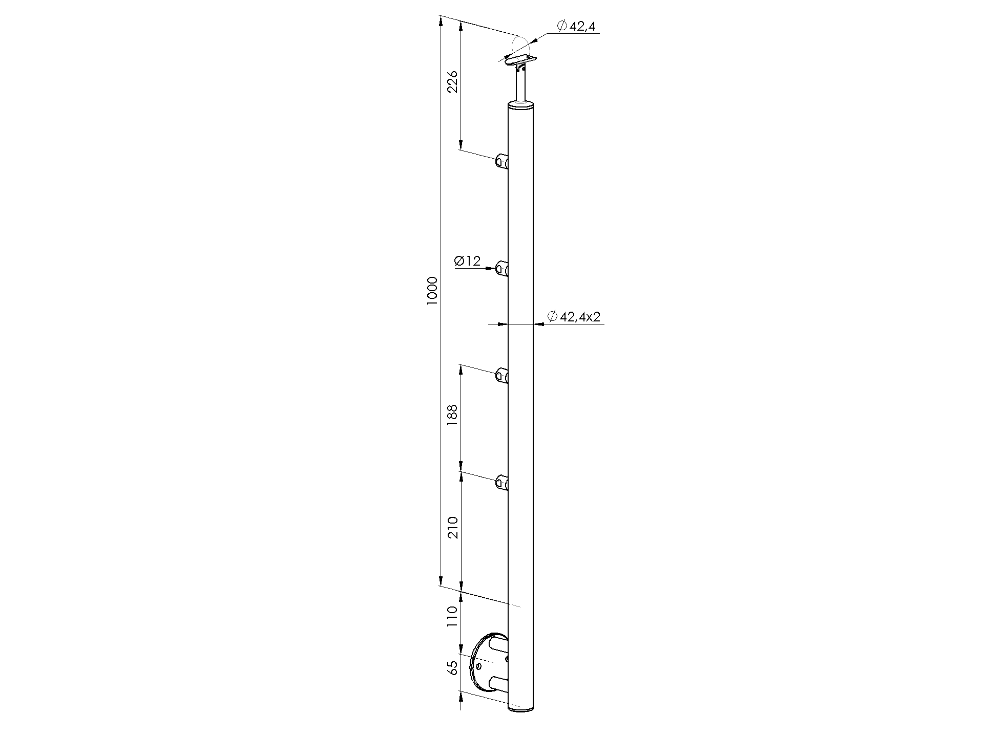 1 pcsMaterialStainless steel AISI 304Surface finishSatinedPostD42,4x2Required productsEnd cap A/5729-242