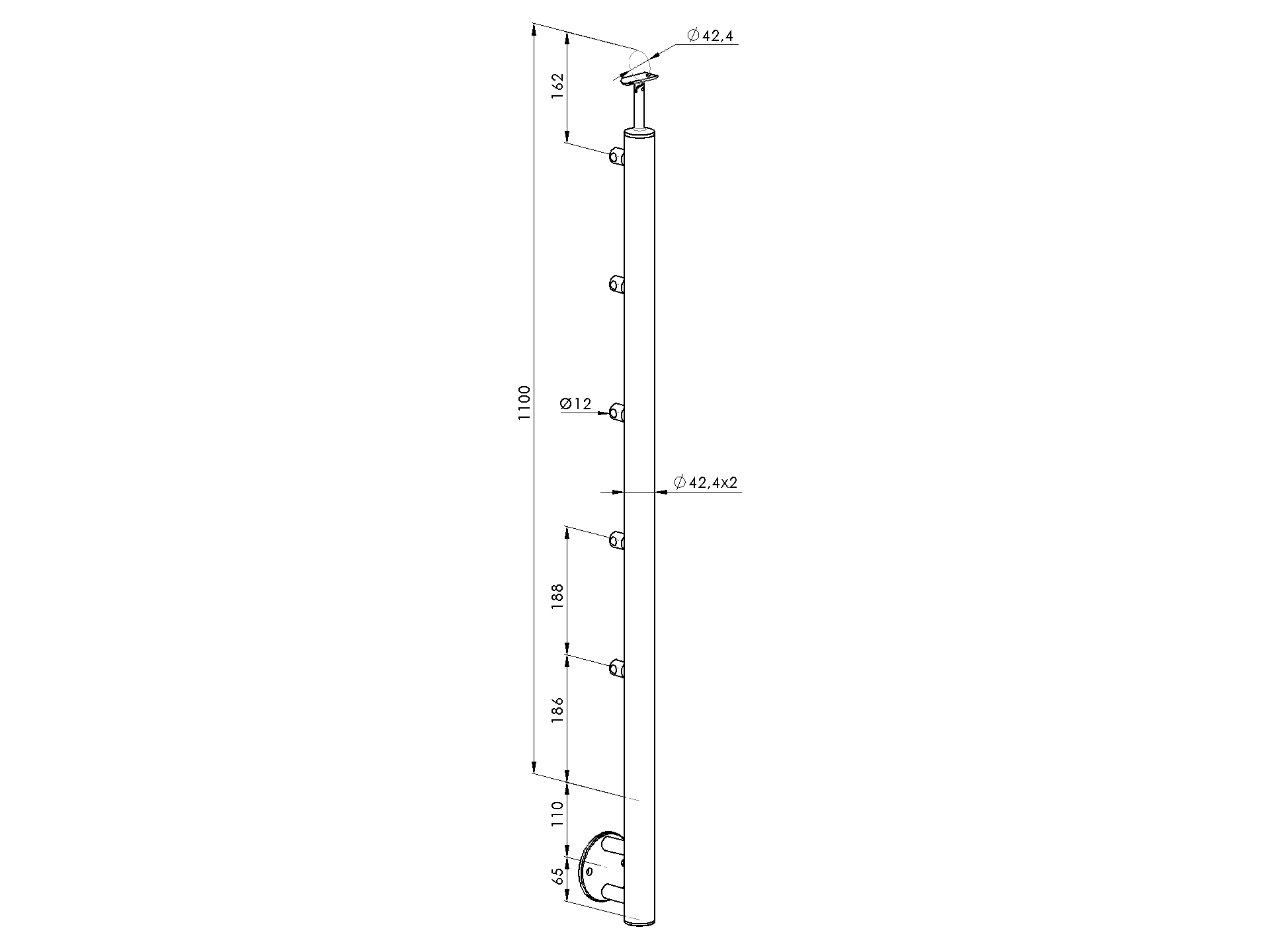 1 pcsMaterialStainless steel AISI 304Surface finishSatinedPostD42,4x2Required productsRound bar holders A/0830-042