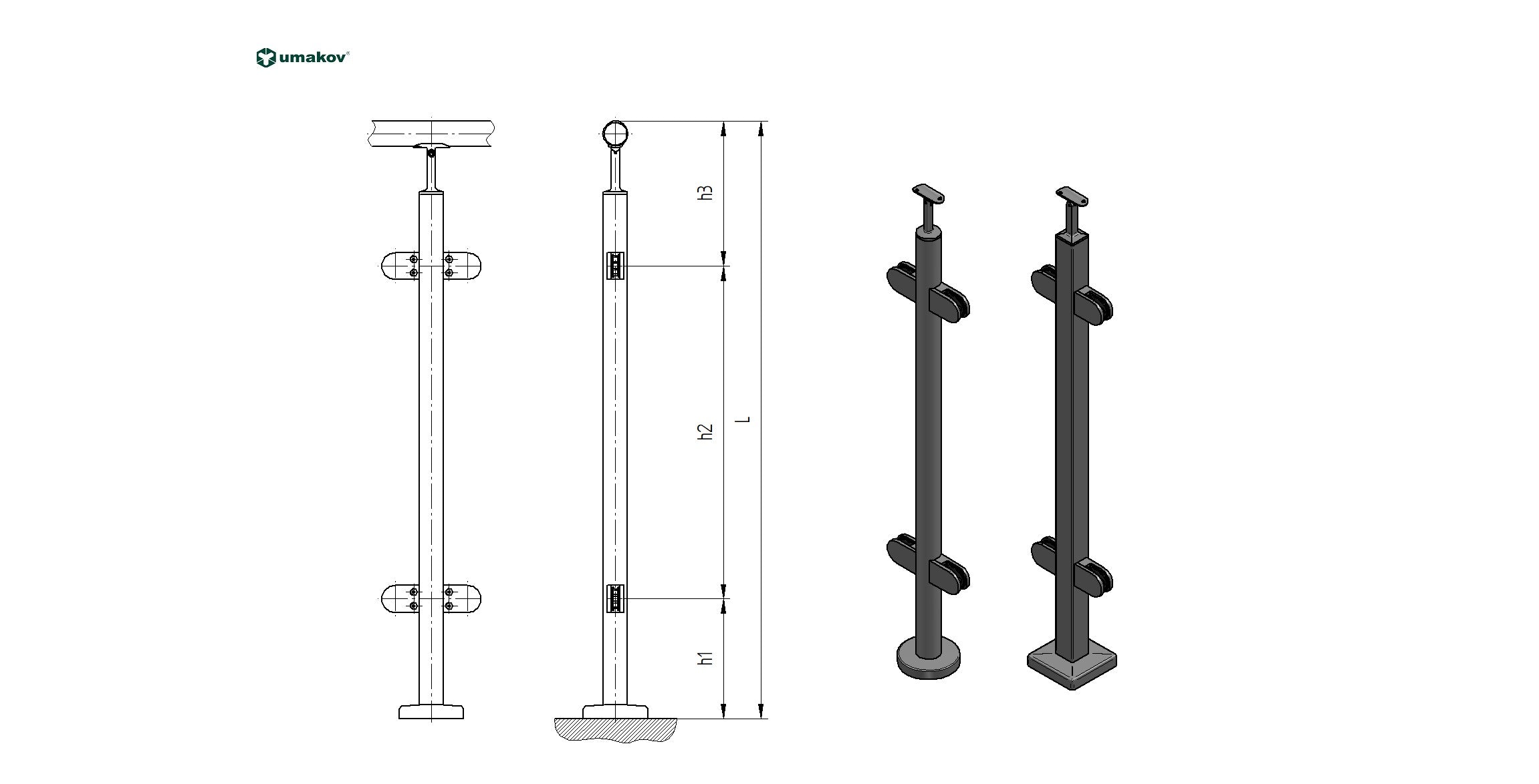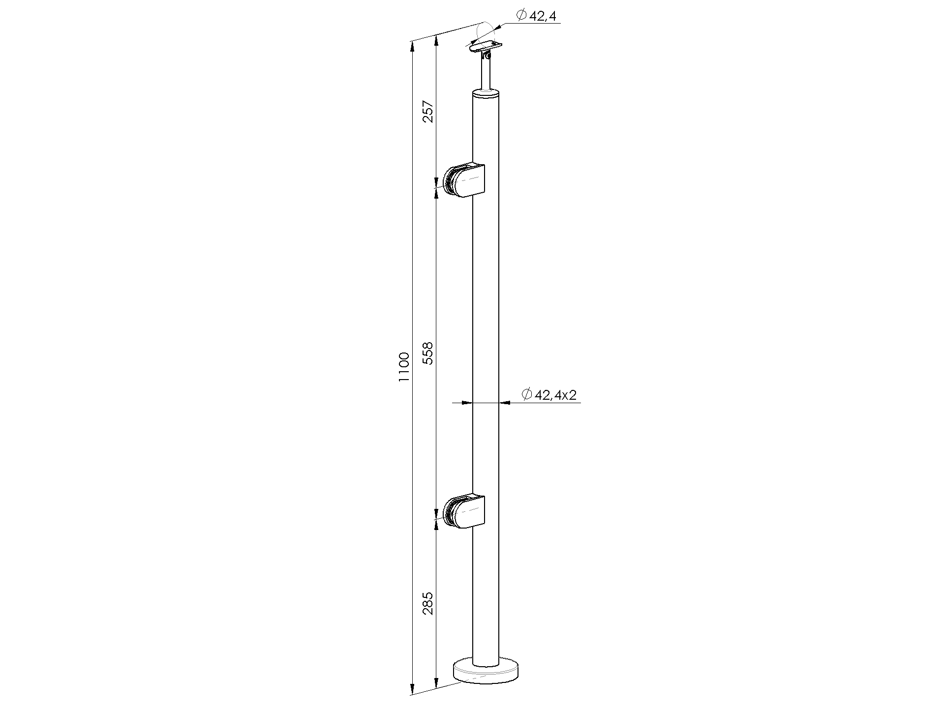 1 pcsMaterialStainless steel AISI 304Surface finishSatinedPostD42,4x2Required productsGlass clamp A/2200-042