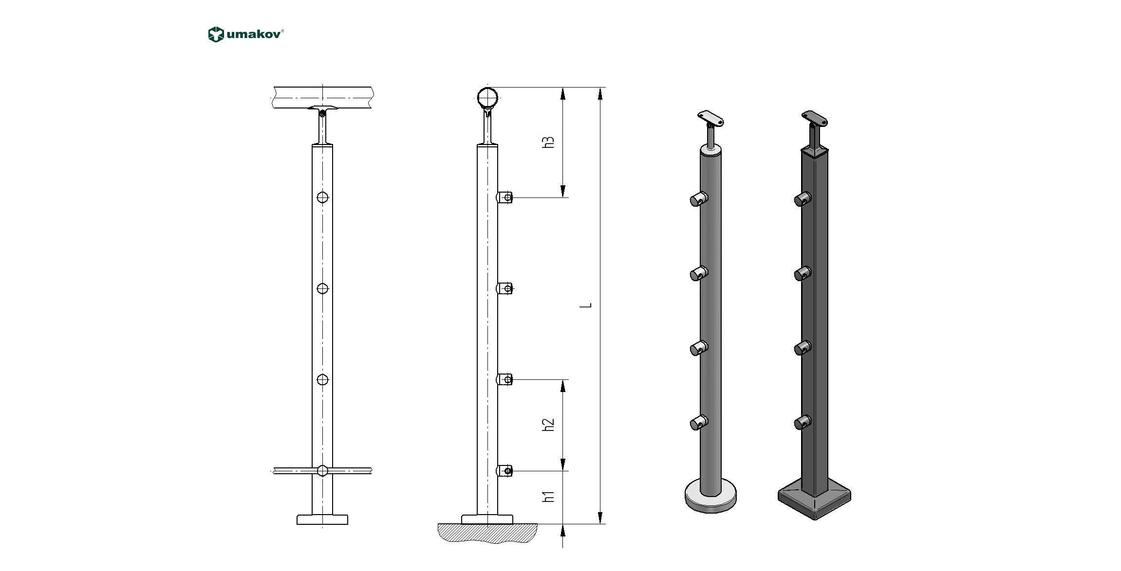 5 pcsMaterialStainless steel AISI 304Surface finishNaturalL12Stainless steel Baluster post A-VR90-4D12