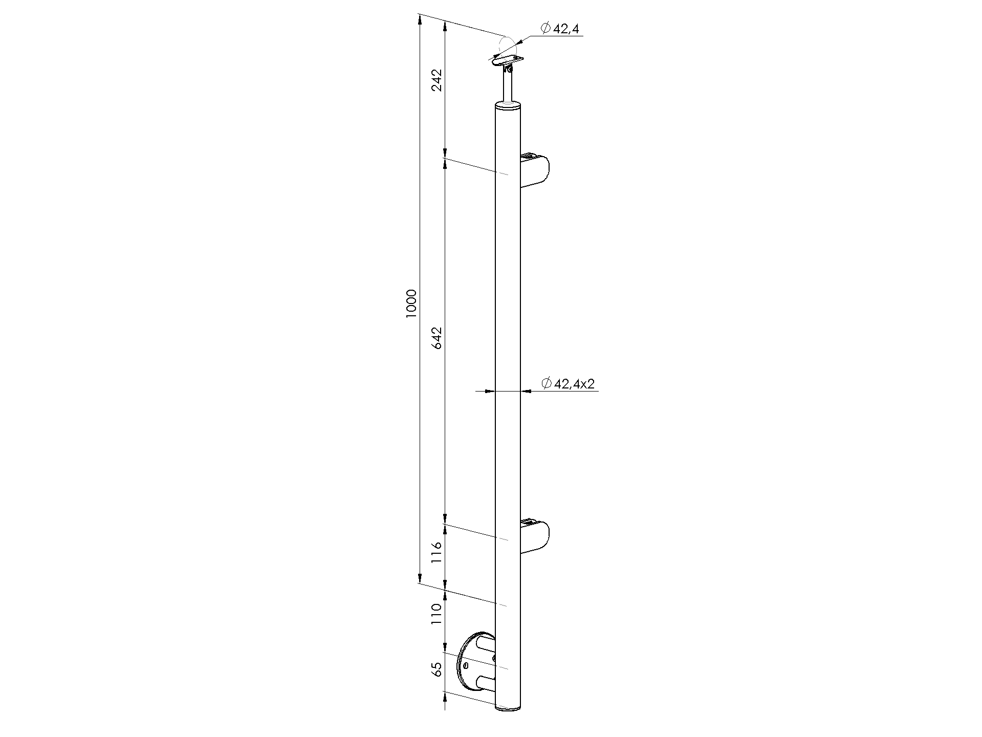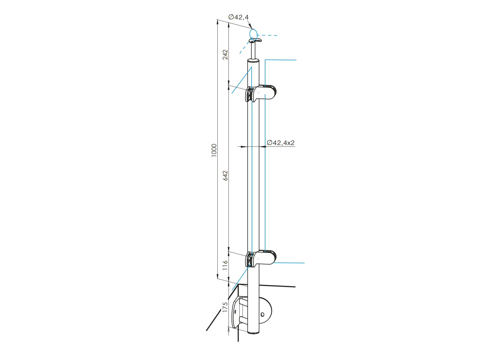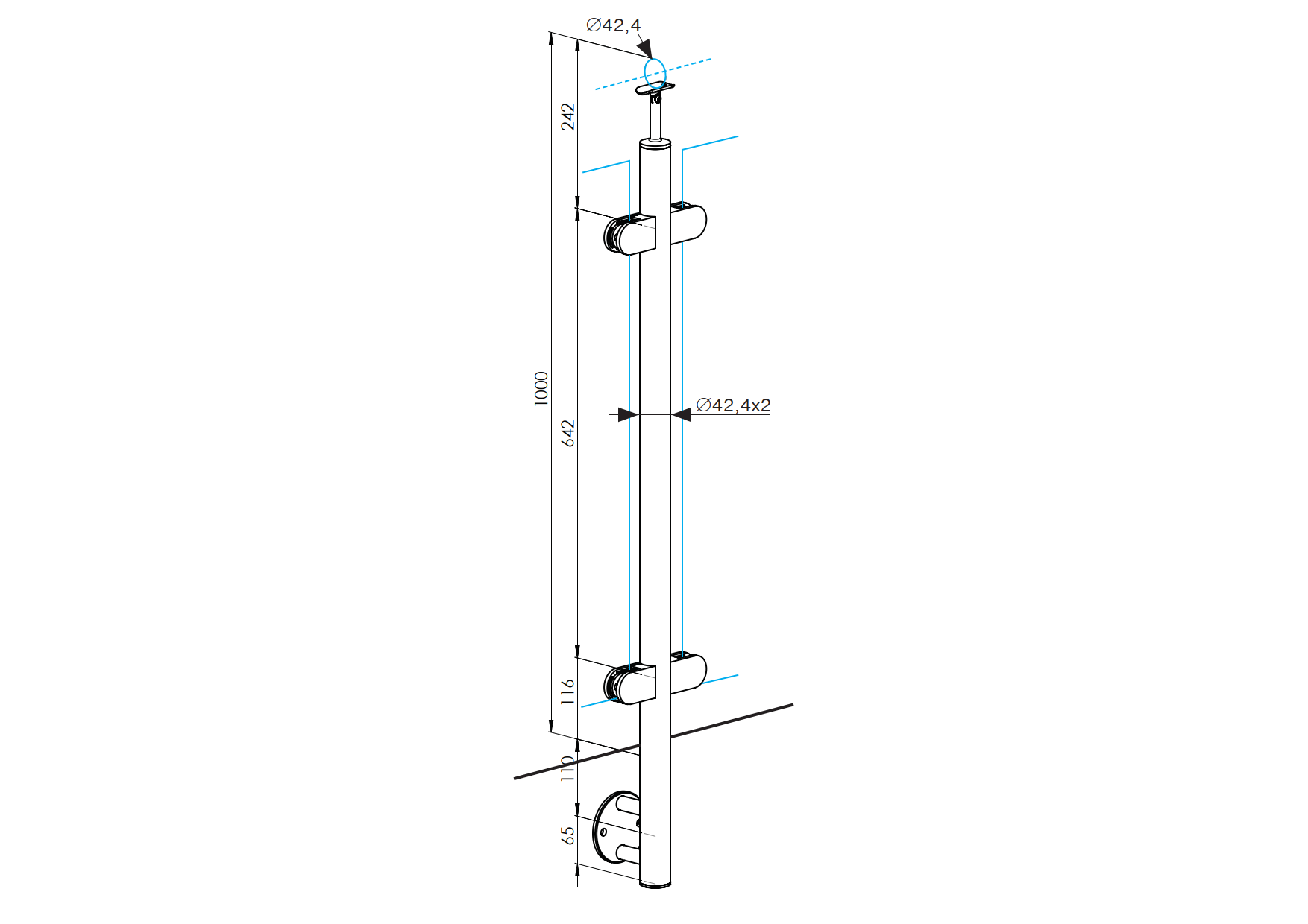 1 pcsMaterialStainless steel AISI 304Surface finishSatinedPostD42,4x2Required productsEnd cap A/5729-242