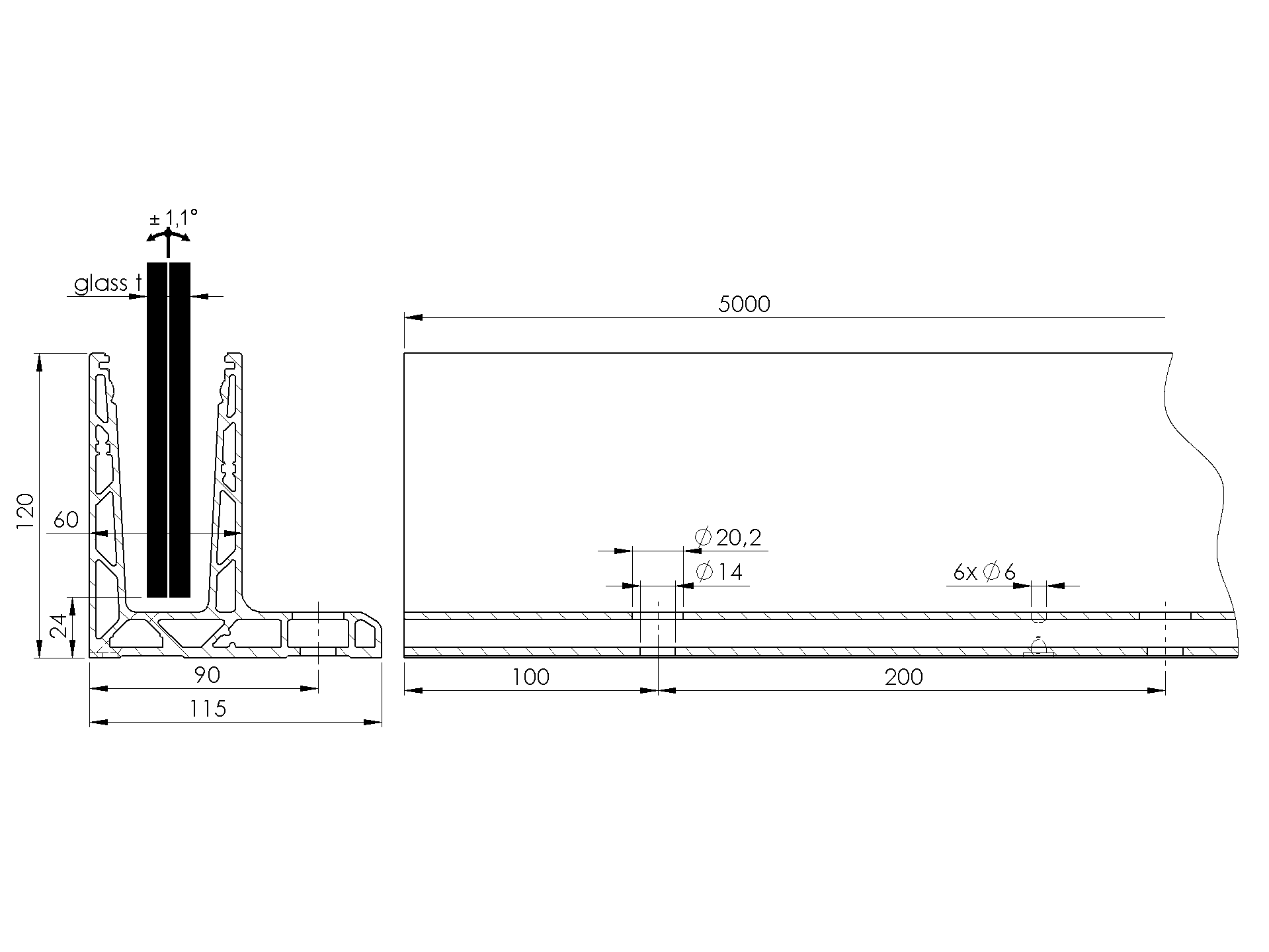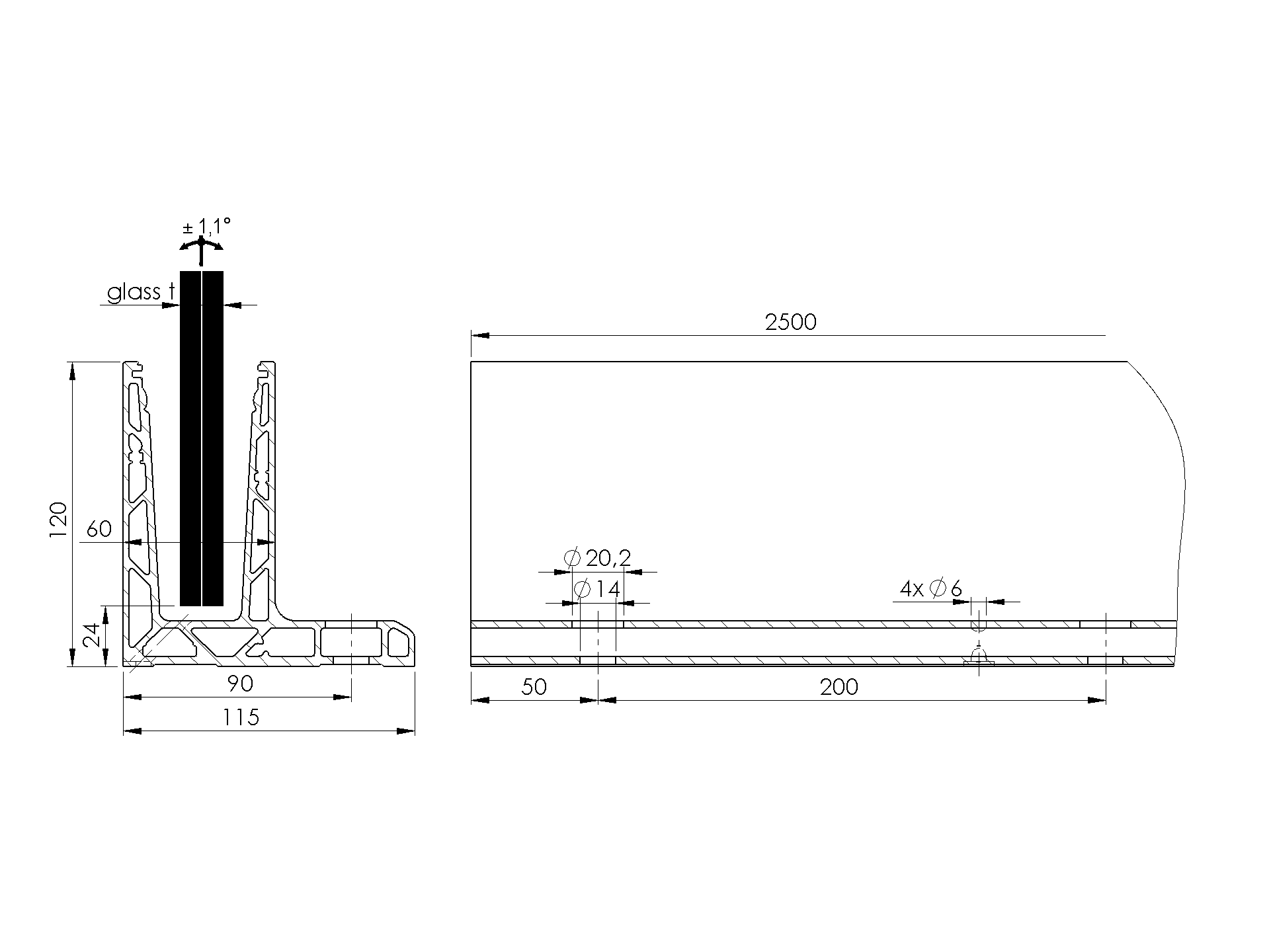 Material: Stainless steel AISI 304, Surface finish: Natural, Anchoring: Top