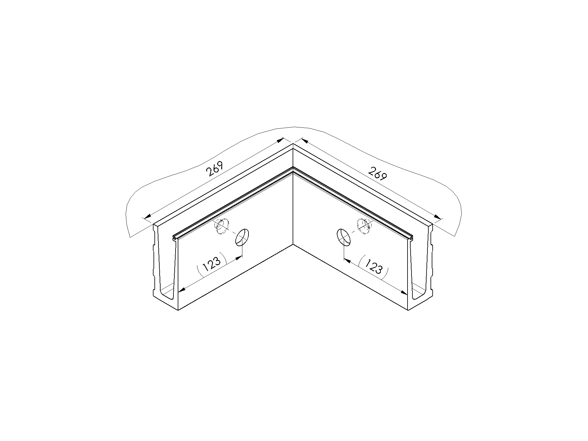 AL profile, side mount- 90°conector AL/ELOX/Satin