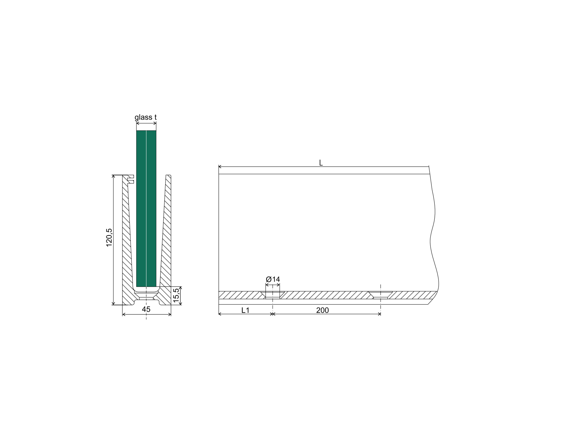 Celosklenené zábradlie-profil-vrchné kotvenie