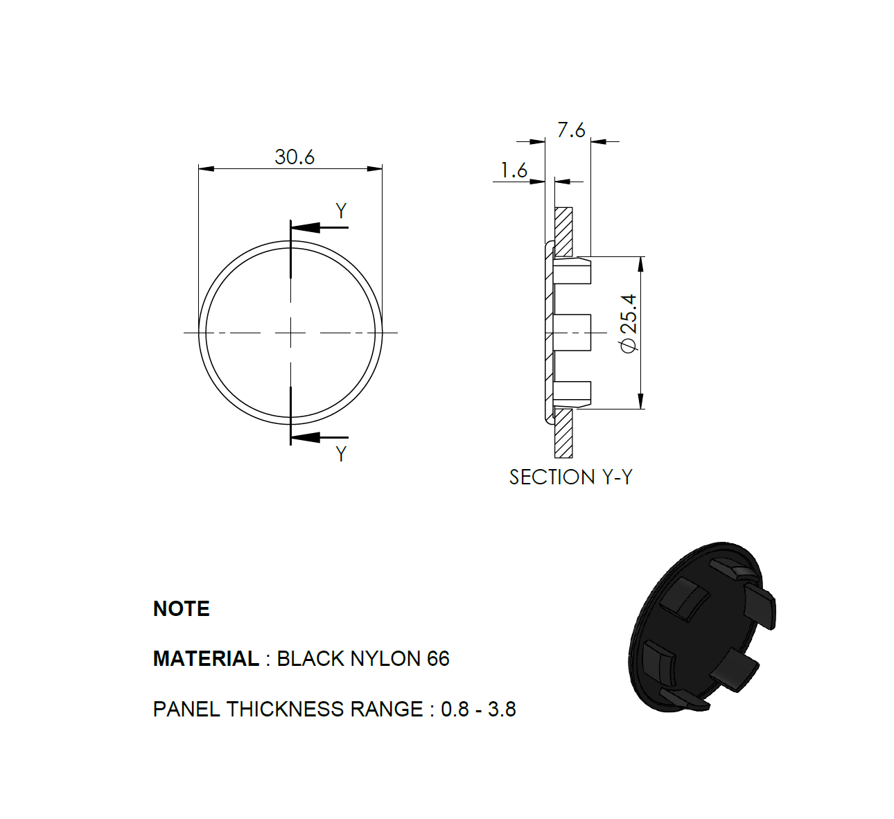 Material: Plastic, Color: Black, D: 25, d: 30