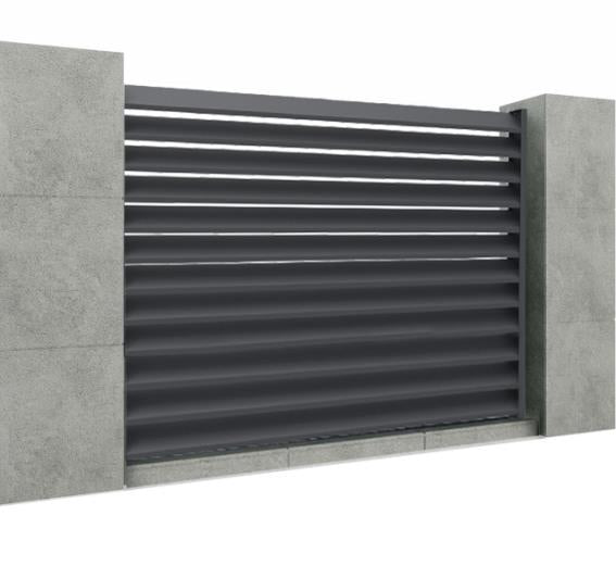 With a height of 1700mm and a width of 2000mm, the assembly consists of 20x120mm aluminium slats that are fixed with adaptors. The 20 x 120mm louvre slats are arranged to allow airflow and partial light passage, whilst providing a sense of security and discretion. This modern design offers a balance between privacy and openness, allowing light and air to pass through, while the assembly maintains a sense of security and elegance. An ideal solution for the exterior of homes, gardens or commercial spaces.