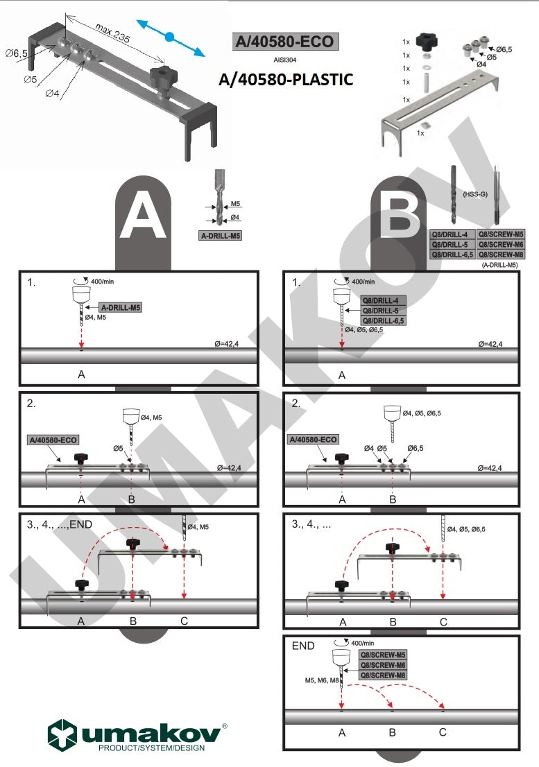 Preparation for tube drilling D42,4x2mm, 40x40x2mm