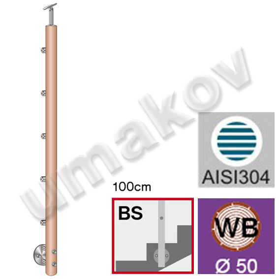 Material: Wood Beech - CINK, Surface finish: Natural, Type/Height: Stair/1000mm, Filling: d12, Post: D50 - wood, Handrail: D42,4x2, Anchoring: Side