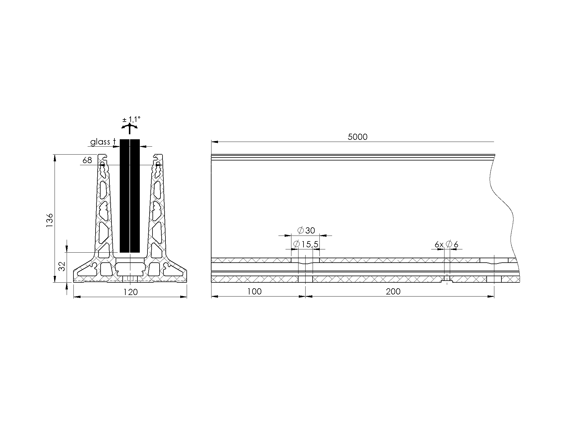 Top mount - glass AL/0019-2500-N-E