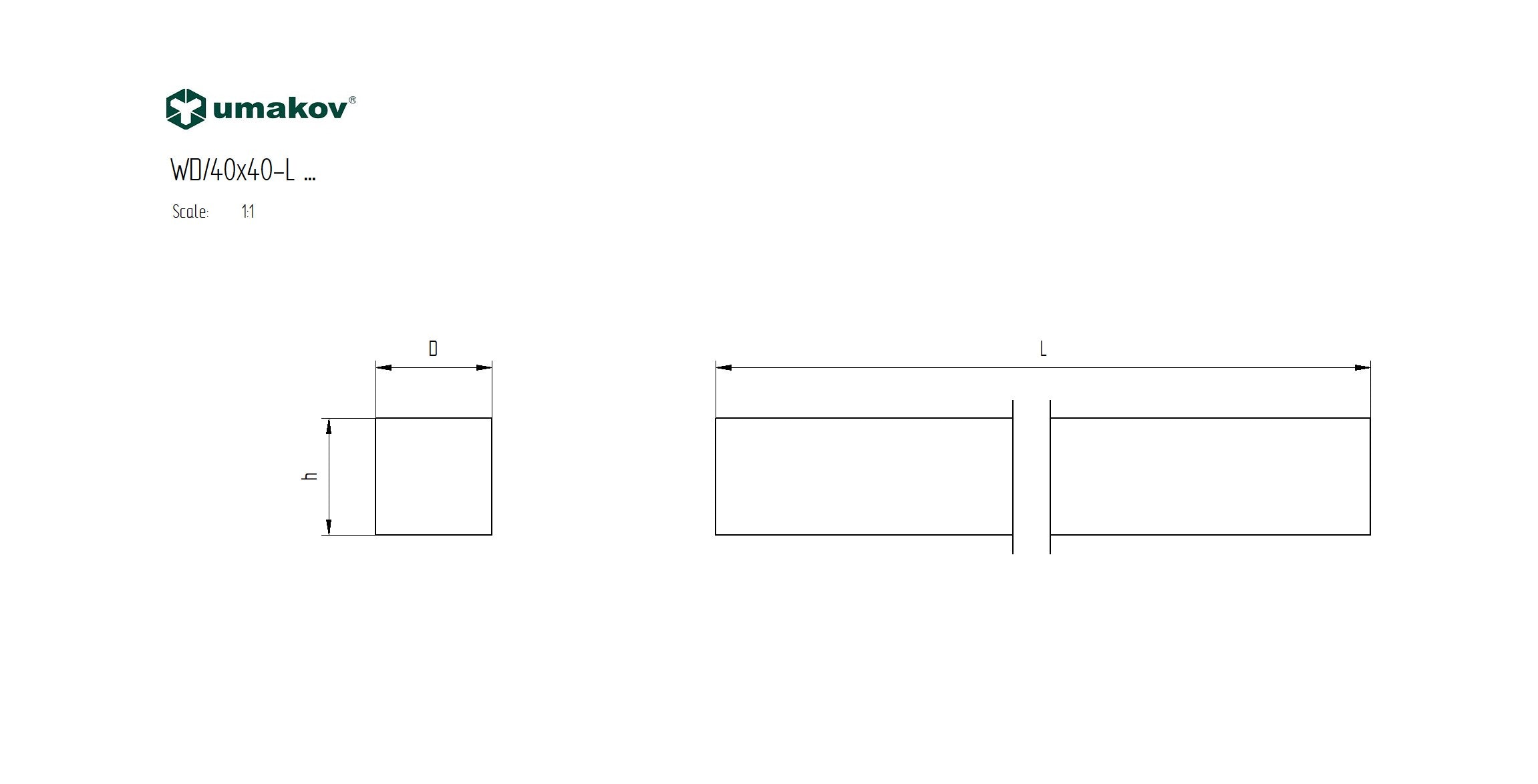 Square handrail, size 40x40mm, length 2000mm (tolerance +-5%)
